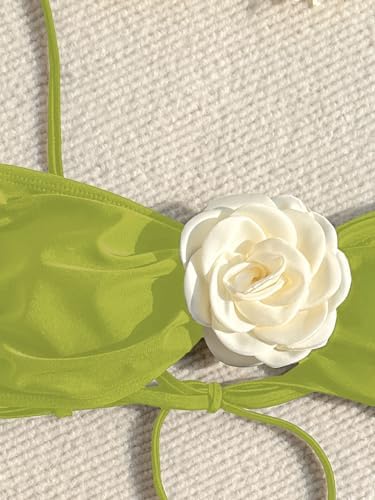 OYOANGLE 女款 2 件式 3D 玫瑰比基尼泳裝 細肩帶高腰泳衣 沙灘裝