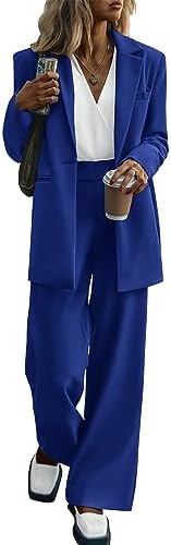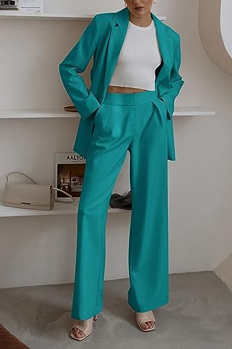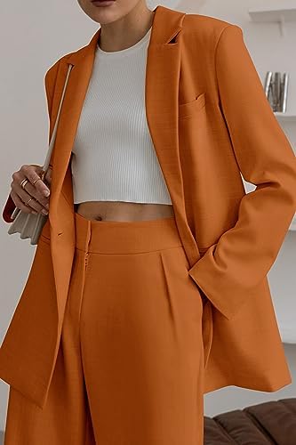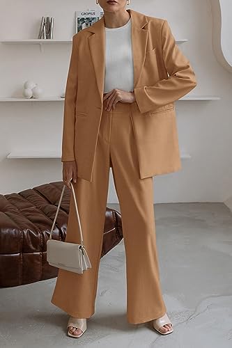 PRETTYGARDEN 女款秋季兩件式西裝外套和寬腿褲口袋商務休閒西裝套裝