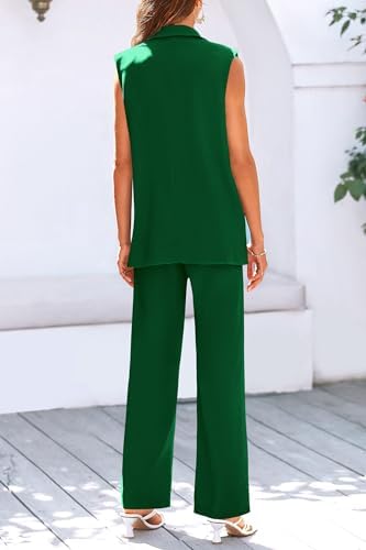PRETTYGARDEN Womens Sleeveless Suit Vest And Wide Leg Pants Business Casual Blazer Set