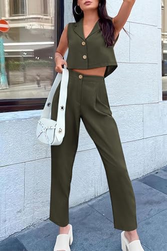 PRETTYGARDEN Womens V Neck Cropped Vest Tops High Waisted Pants Suit Set