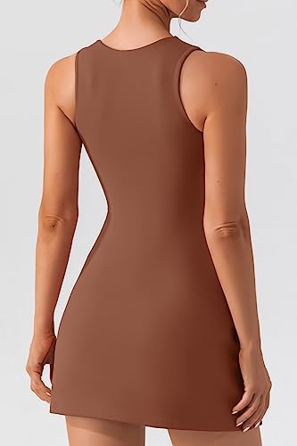 QINSEN Women's Square Neck Bodice Dress Sleeveless Tank Top Stretch Flare Mini Dresses