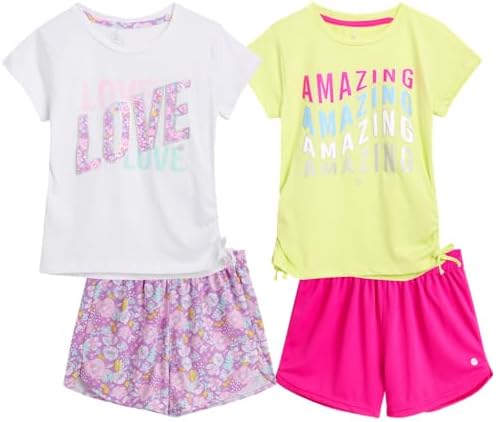 RBX 女童運動短褲組 - 4 件短袖機能性 T 恤和短褲(尺寸:7-12)