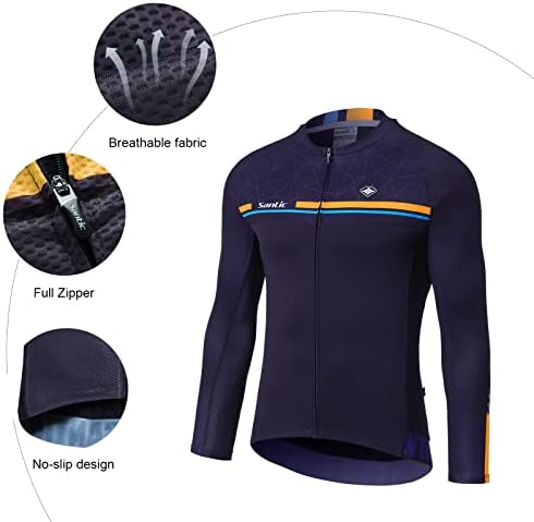 Santic Cycling Jersey 男款長袖自行車反光全拉鍊自行車襯衫,附口袋