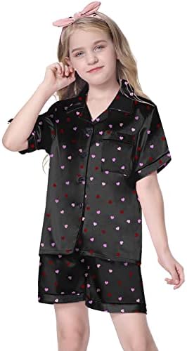 Schbbbta 女童睡衣,緞面絲質睡衣組 兒童 2 件式鈕扣睡衣睡衣,送給媽媽和我的禮物