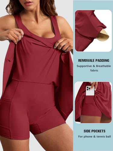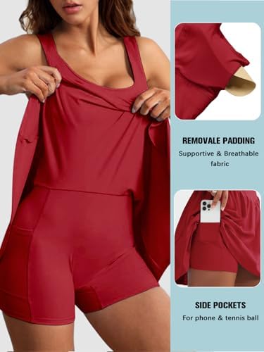 Sexyasasii 女款 夏季 運動 網球洋裝 內建短褲和胸罩 方領 運動 運動 運動 高爾夫球裙