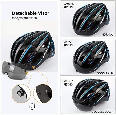 Shinmax 自行車頭盔,CPSC/CPC 自行車頭盔,適合成年男性女性,附磁性護目鏡和 LED 背光自行車頭盔可調 SM-T69
