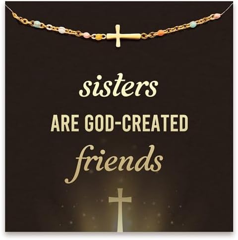 MONOZO 女款十字架項鍊 - 14K 鍍金十字架項鍊 多層金色十字架項鍊 小巧側向十字架項鍊 金色十字架項鍊 女款 時尚 金色 珠寶禮物 送給女性 女孩