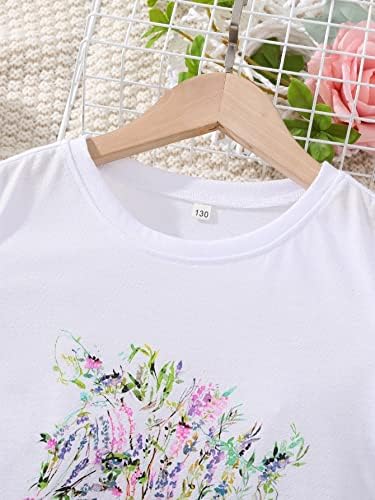 幼童 兒童 女孩 服裝 花卉 短袖 T 恤 上衣 + 腰部 口袋 夏季 短 組 女孩 衣服
