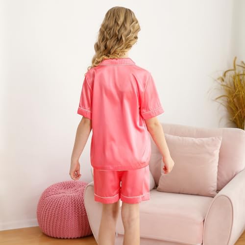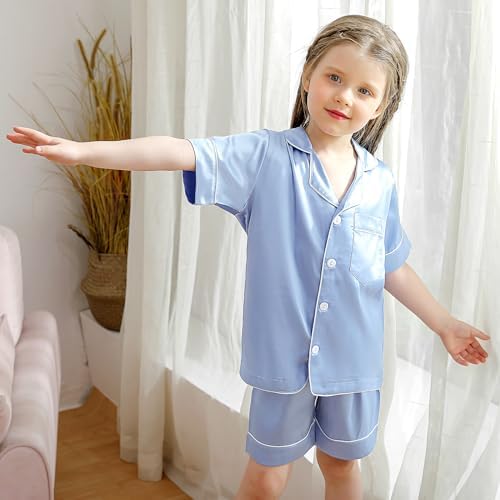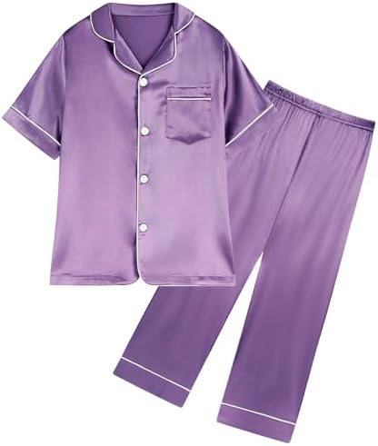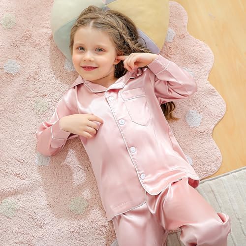 Schbbbta 女童睡衣,緞面絲質睡衣組 兒童 2 件式鈕扣睡衣睡衣,送給媽媽和我的禮物