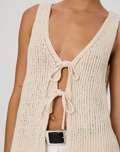 Women Y2k Button Down Crochet Knit Vest Sleeveless Hollow Out Crop Tops Vintage Casual V-Neck Versatile Streetwear